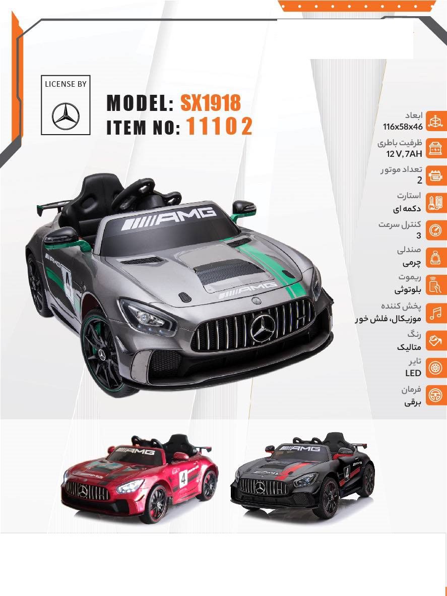 ماشین کنترلی دوموتور سه سرعت باتری ۱۲ ولت -صندلی- چرمی – موزیکال فلش خور – استارت دکمه ای ریموت بلوتوثی رنگ متالیک تایر LED- ابعاد ۱۱۶۰۵۸۰۴۶