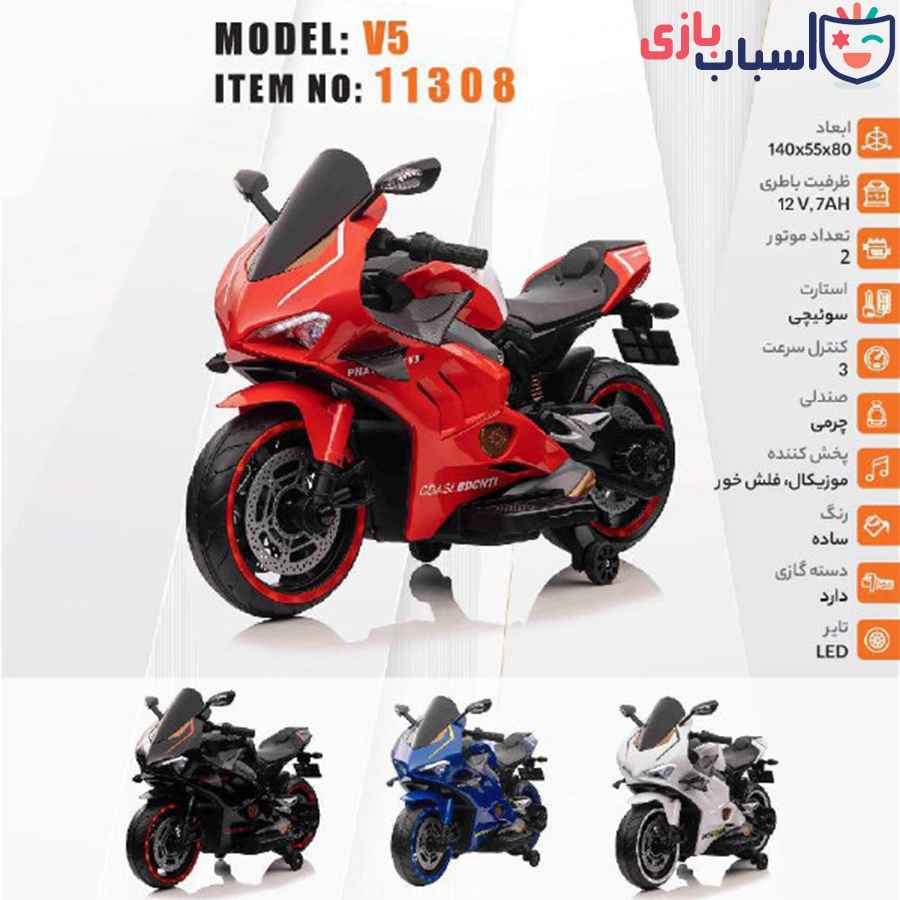 موتور شارژی دو موتور دو سرعت باتری ۱۲ ولت-صندلی چرم موزیکال فلش خور – استارت سوئیچی رنگ ساده دسته گازی تایر LED ابعاد ۱۴۰۰۵۵۰۸۰