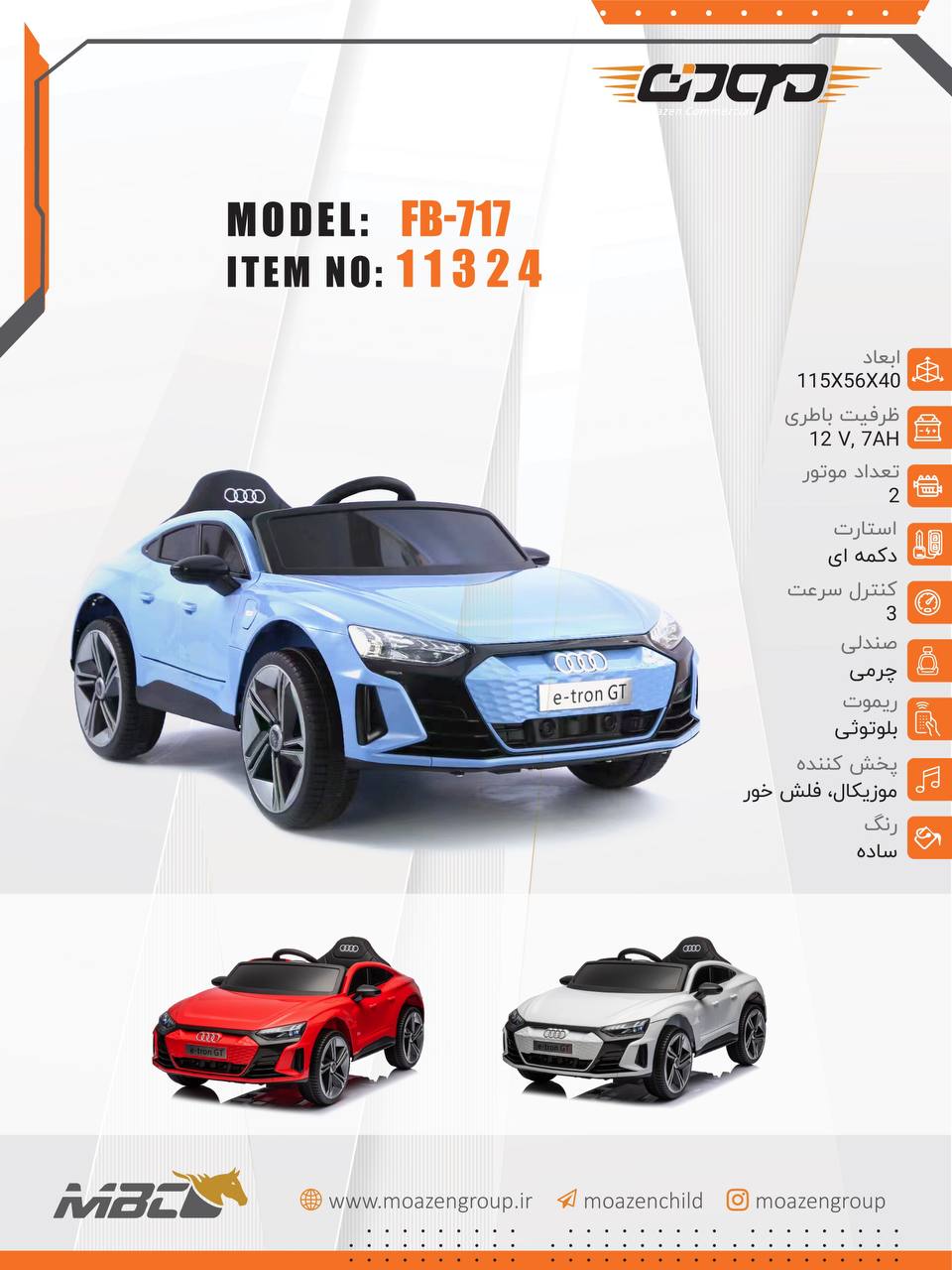 ماشین کنترلی دوموتور سه سرعت – ریموت بلوتوثی – باتری ۱۲ ولت – صندلی چرمی موزیکال فلش خور استارت دکمه ای – رنگ ساده – ابعاد ۴۰*۱۱۵۵۶