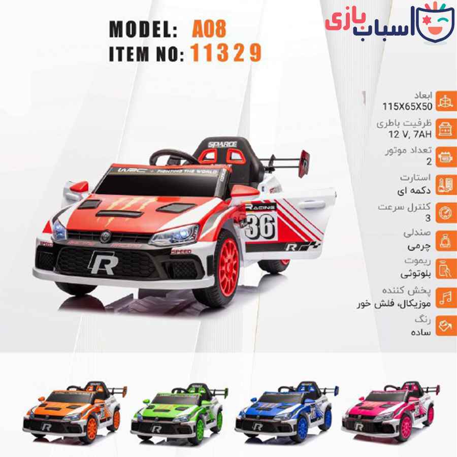 ماشین کنترلی دوموتور سه سرعت – ریموت بلوتوثی – باتری ۱۲ ولت – صندلی چرمی موزیکال فلش خور استارت دکمه ای – رنگ ساده – ابعاد ۱۱۵۶۵۰۵۰