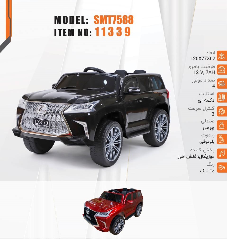 ماشین کنترلی چهار موتور سه سرعت – ریموت بلوتوثی باتری ۱۲ ولت – صندلی چرمی موزیکال فلش خور استارت دکمه ای – رنگ متالیک – ابعاد ۱۲۶۷۷۶۲