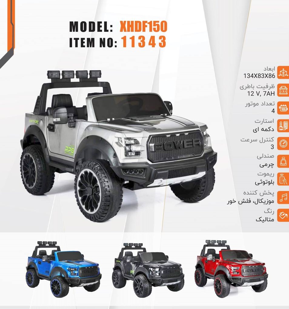 ماشین کنترلی چهارموتور سه سرعت – باتري 12 ولت – صندلی چرمی – موزیکال فلش خور – استارت دکمه اي – رنگ متالیک – ریموت بلوتوثی – ابعاد 134.83.86
