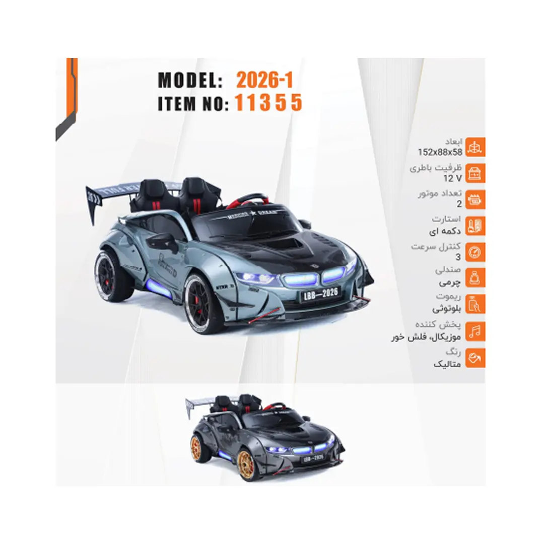 ماشین کنترلی دوموتور سه سرعت باتری ۱۲ ولت – صندلی چرمی موزیکال فلش خور استارت دکمه ای رنگ متالیک – ابعاد ۱۵۲۸۸۵۸