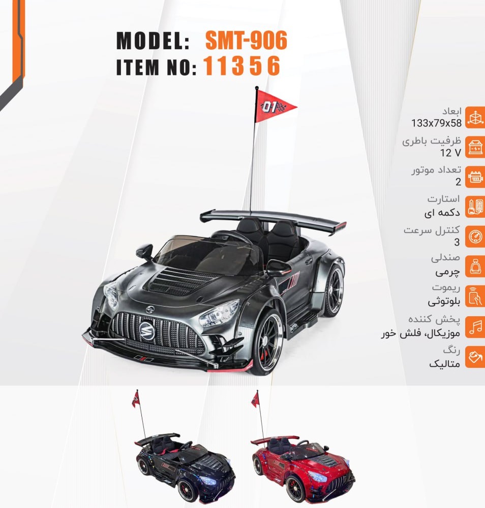 ماشین کنترلی دوموتور سه سرعت باتری ۱۲ ولت – صندلی چرمی – موزیکال فلش خور استارت دکمه ای رنگ متالیک – ابعاد ۱۳۳۷۹۵۸